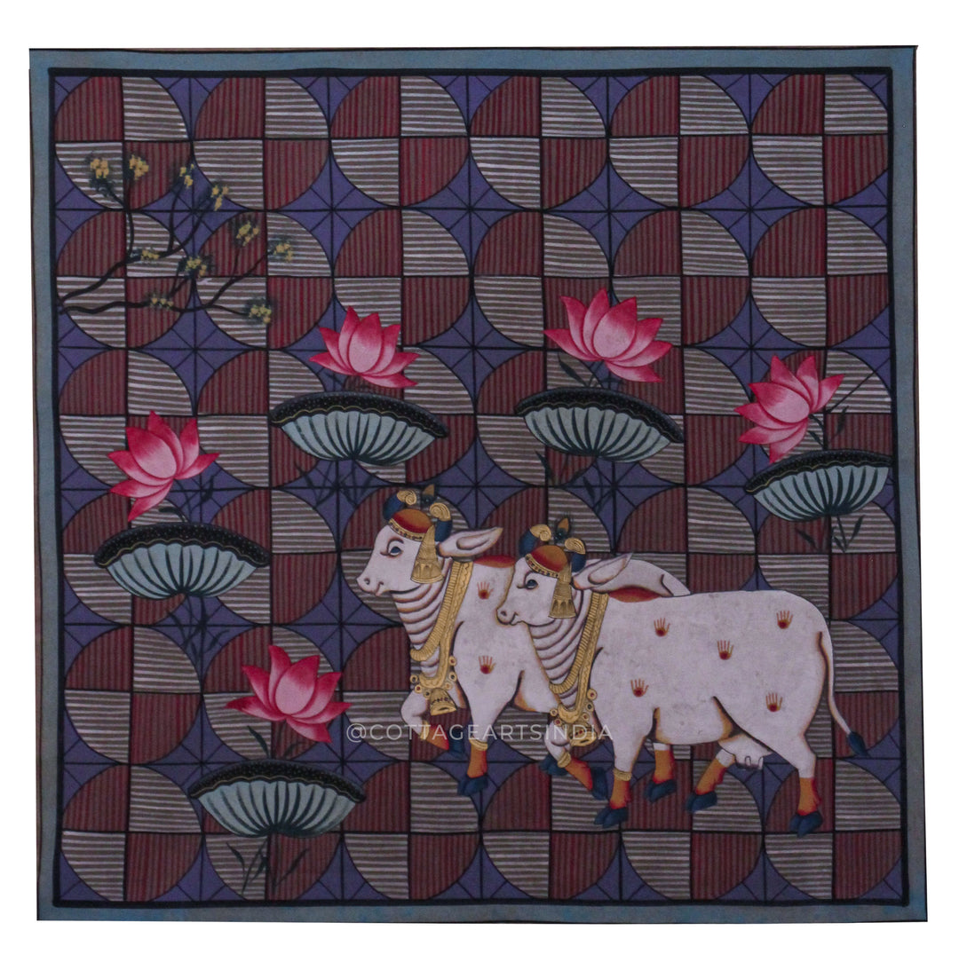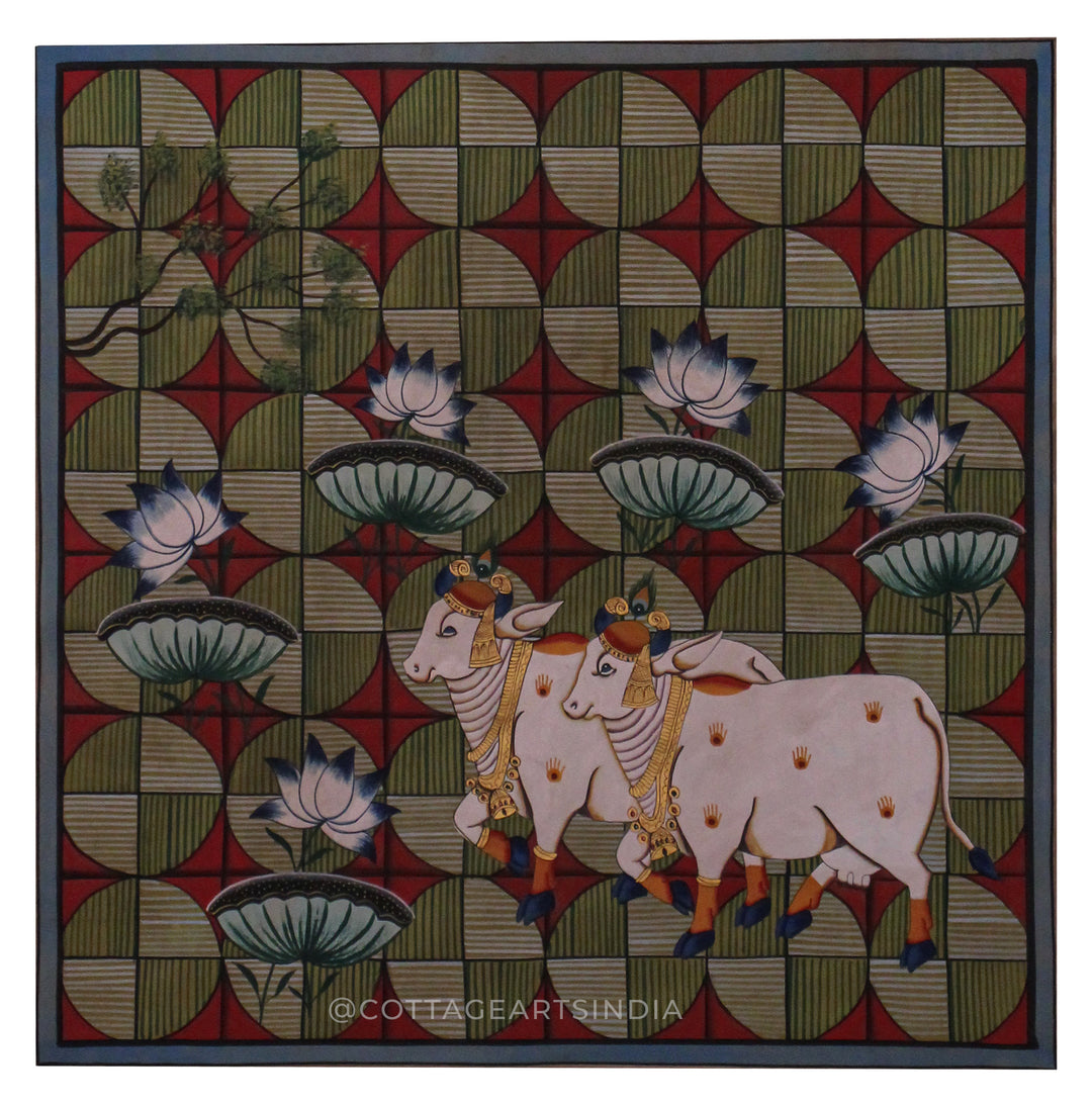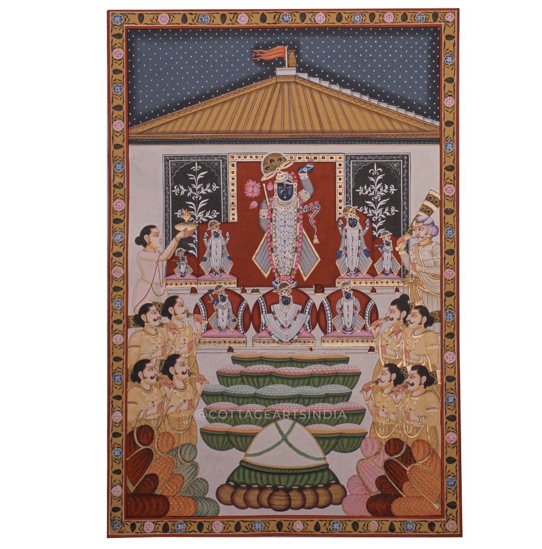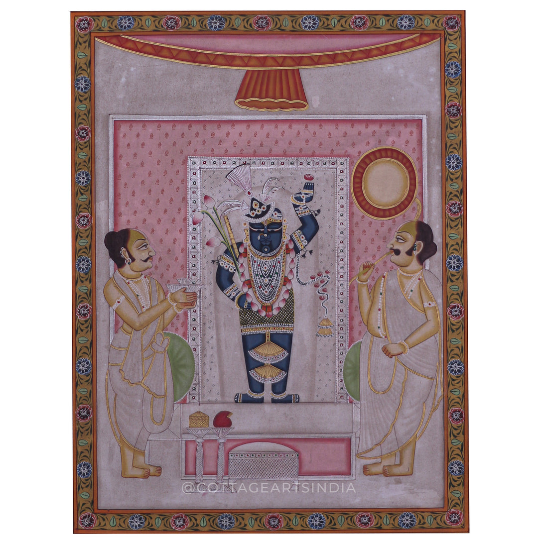 Our Indian Pichwai Painting Collection celebrates the rich artistic heritage of Nathdwara, Rajasthan, where devotion to Shrinathji (Lord Krishna) is expressed through intricate hand-painted masterpieces. Rooted in centuries-old Vaishnav traditions, Pichwai paintings were originally created as sacred backdrops for temple rituals, festivals, and seasonal celebrations.