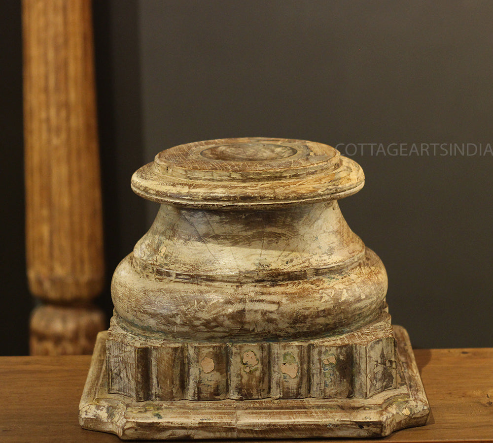 Crafted from reclaimed wooden pillars of traditional Havelis in Rajasthan and Gujarat, these intricately carved bases bring a touch of timeless artistry to any space. Ideal as candle holders or as platforms to showcase your treasured antiques, they blend heritage with functionality, adding a distinctive charm to your decor .