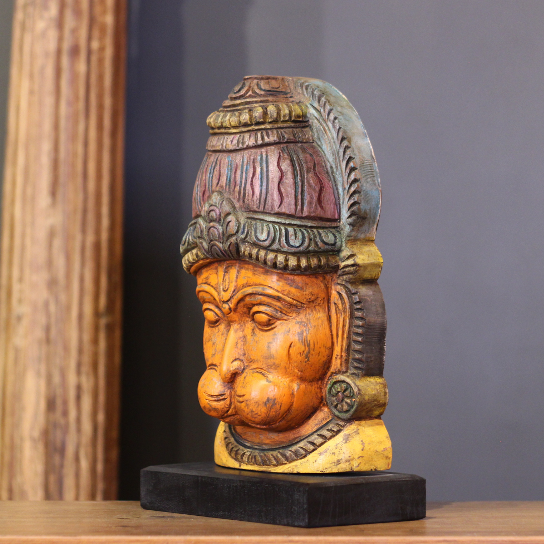 The Wooden hand carved painted sculpture of Hanuman in beautiful hand painting