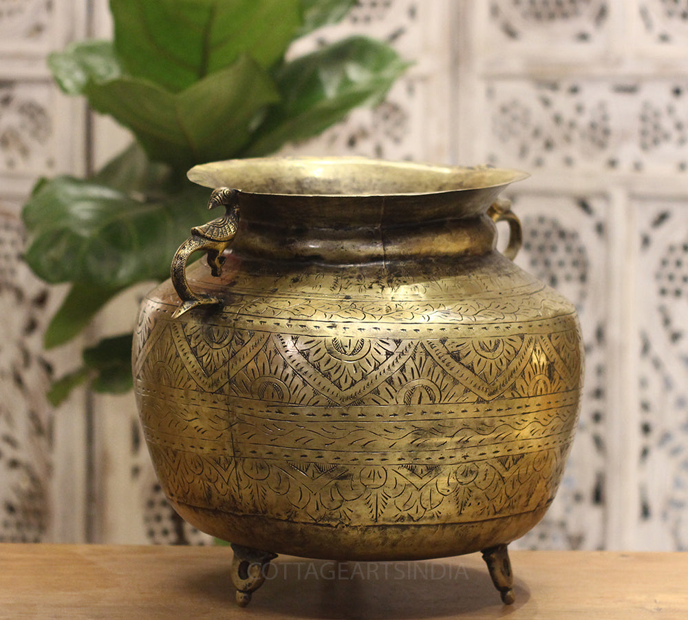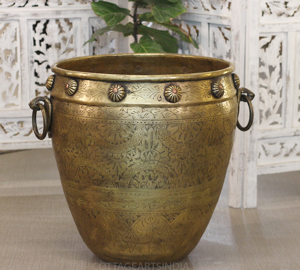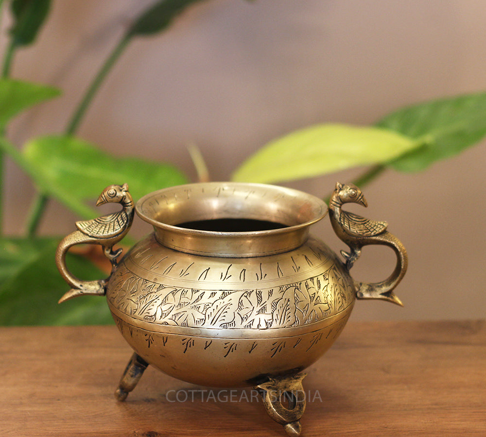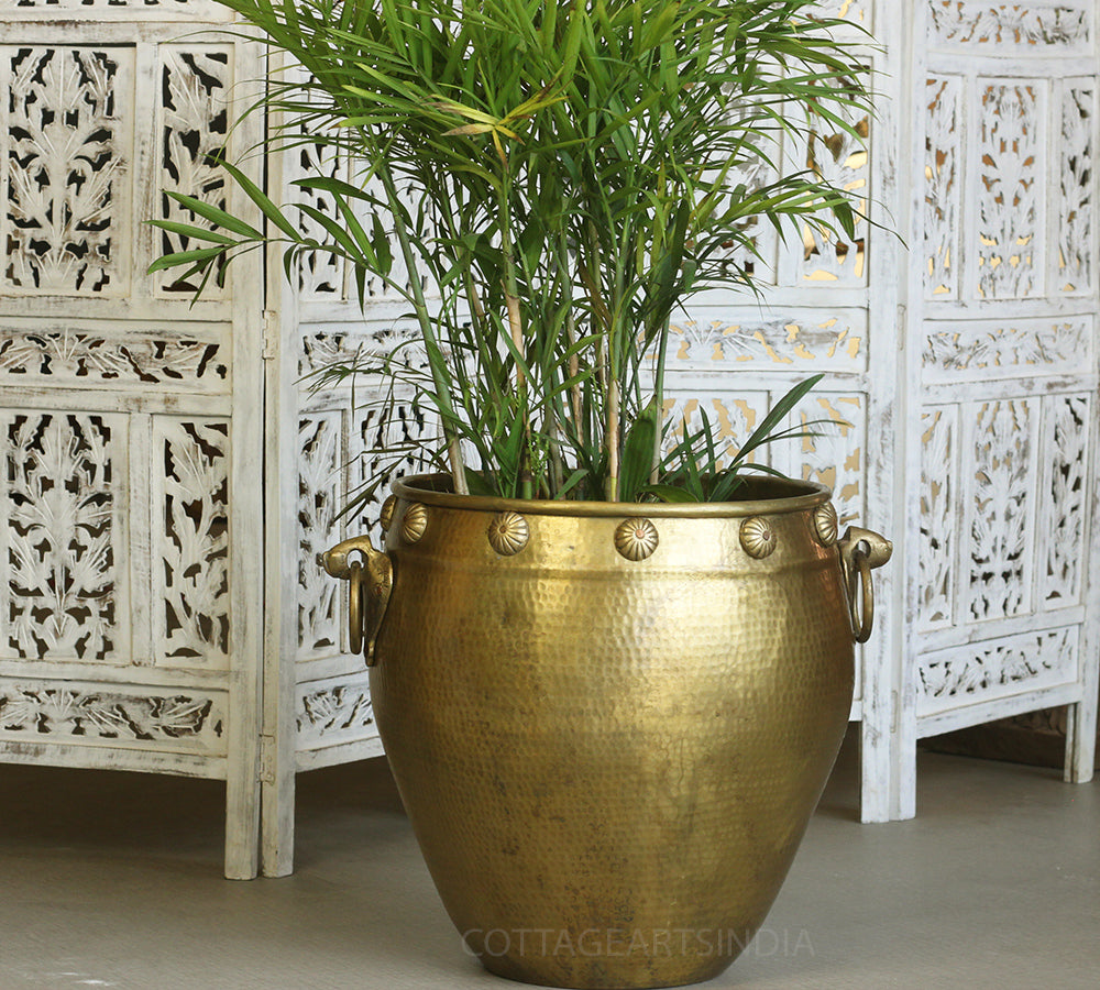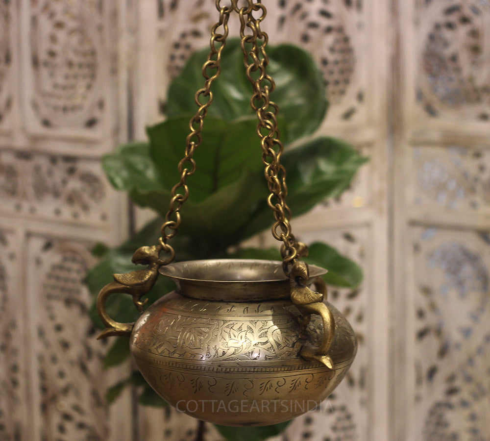 Use brass pots as planters for indoor greens. Place them near idols or sculptures to bring freshness and balance the metallic tones.
