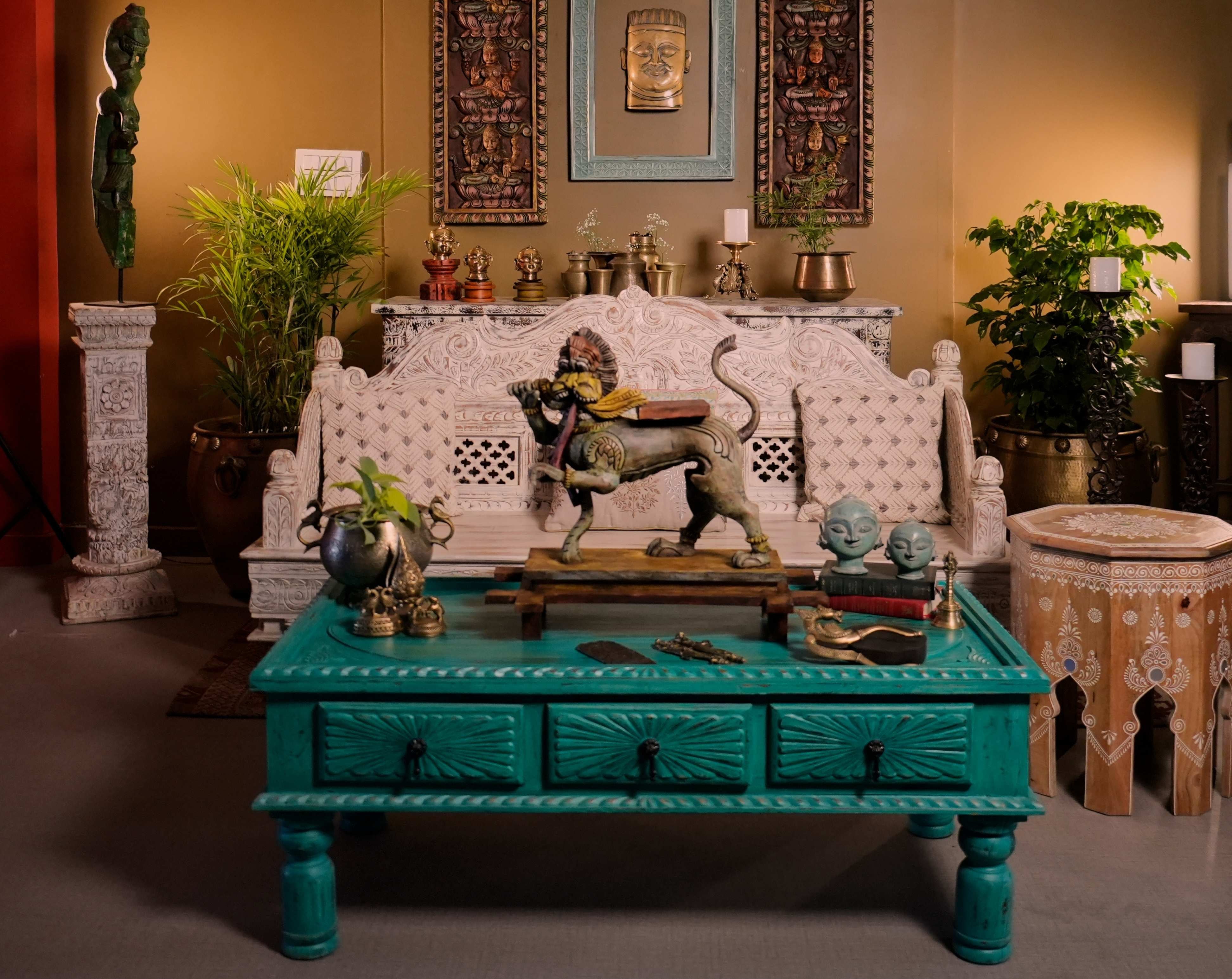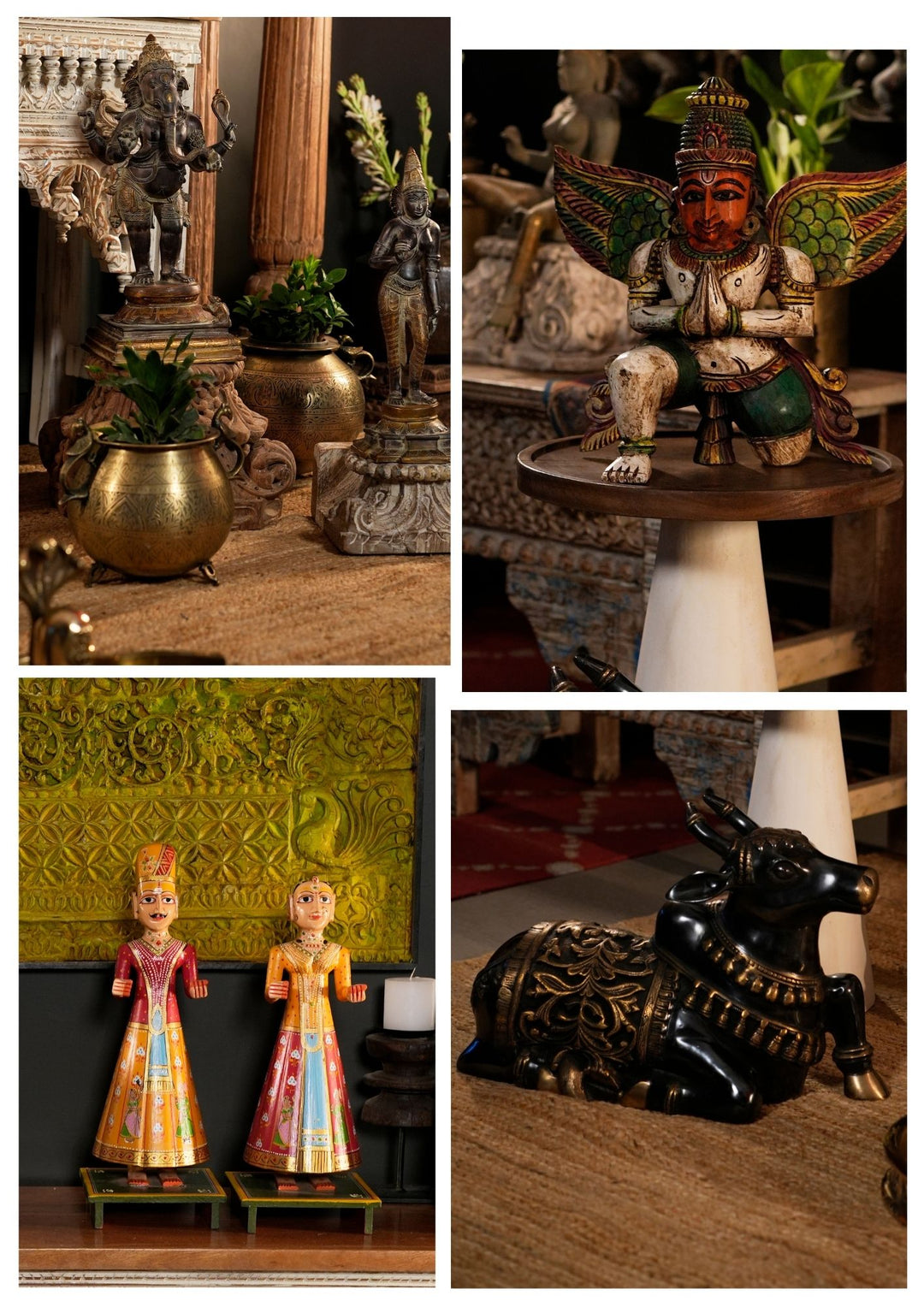 Showcase hand-painted or carved idols on side tables or pedestals. Keep the surroundings minimal so the piece stands out.